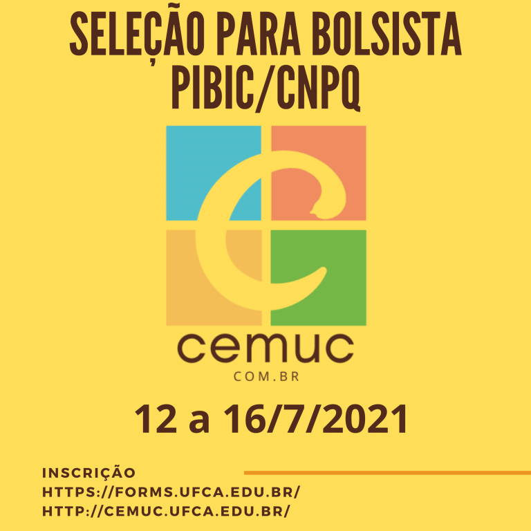 INSCRIÇÕES ABERTAS PARA SELEÇÃO DE BOLSISTA Estão abertas as inscrições para duas (2) vagas no âmbito do Centro de Estudos Musicais do Cariri (CEMUC) para atuar no projeto...